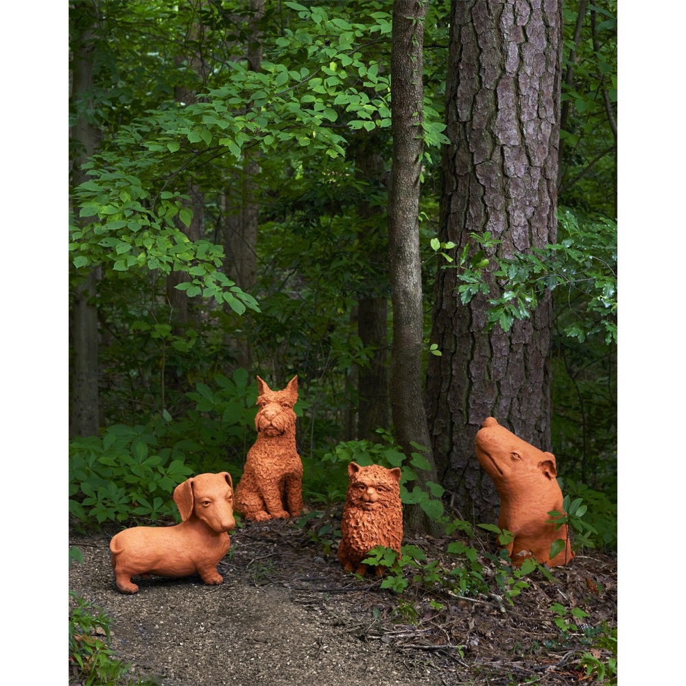 Whimsical in terracotta, Sam the Mutt is a sculpture by the emerging Thai artist Nhut Nhathawut. with an expression that is so lifelike that it feels he may bark at any moment, there are a number of artisanal aspects to the canine sculpture. This includes the obvious strokes of the artist's tools that play along the surface of the dog's body. Brownlee Currey had some fun with this mixed-breed, describing his reality as, "There may be some bulldog in there, but Sam’s mental and physical acuity is more akin to a potato than a sporting breed."