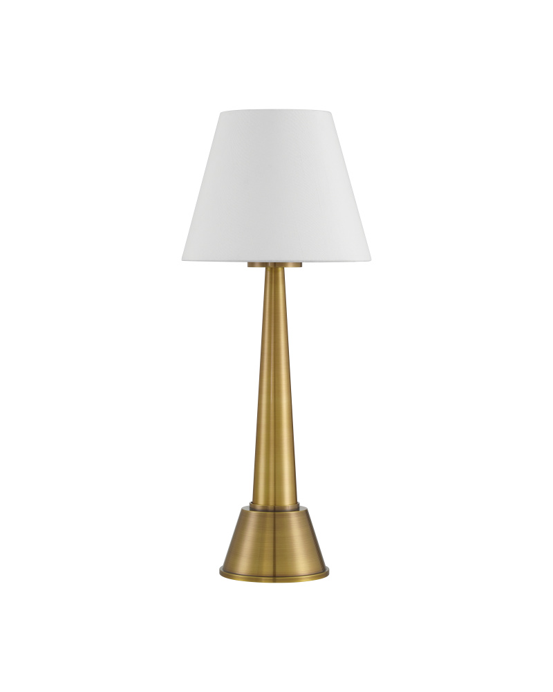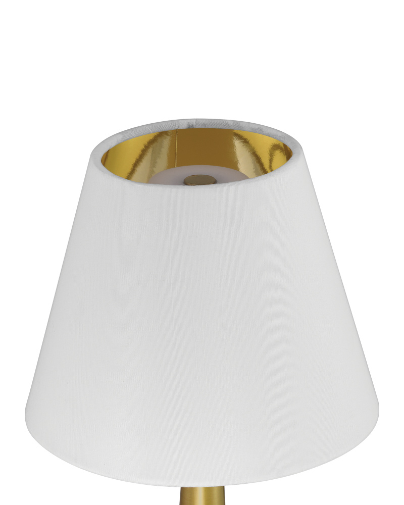 The Saunter Brass Cordless Table Lamp is a gold lamp that takes its name seriously, as it can be moved around with ease. The rechargeable bulb sits atop the metal body in a polished brass finish, and the cream shantung shade slides seamlessly over it. The on/off switch is on the top of the bulb, and the shade has a gold foil lining with a roll edge for a luxe touch.