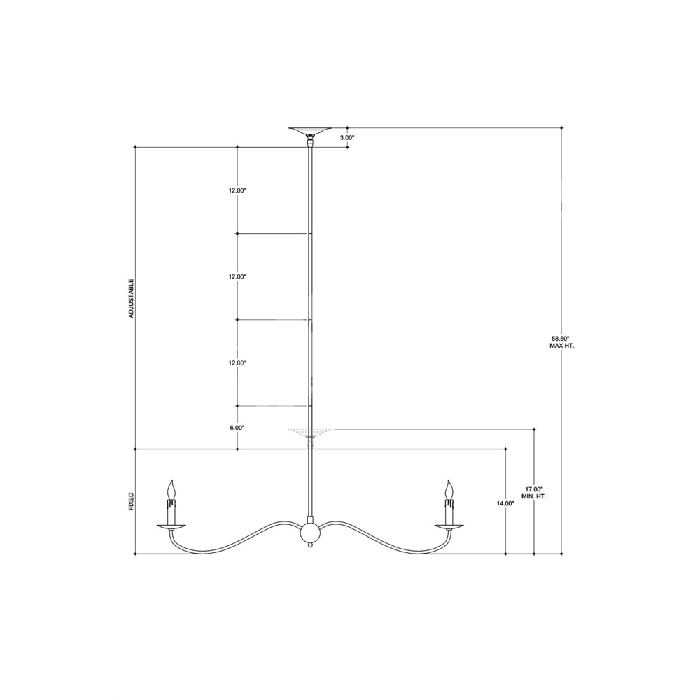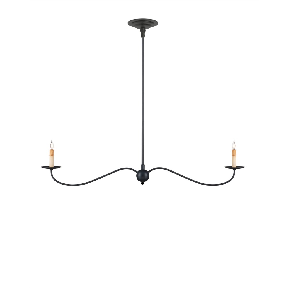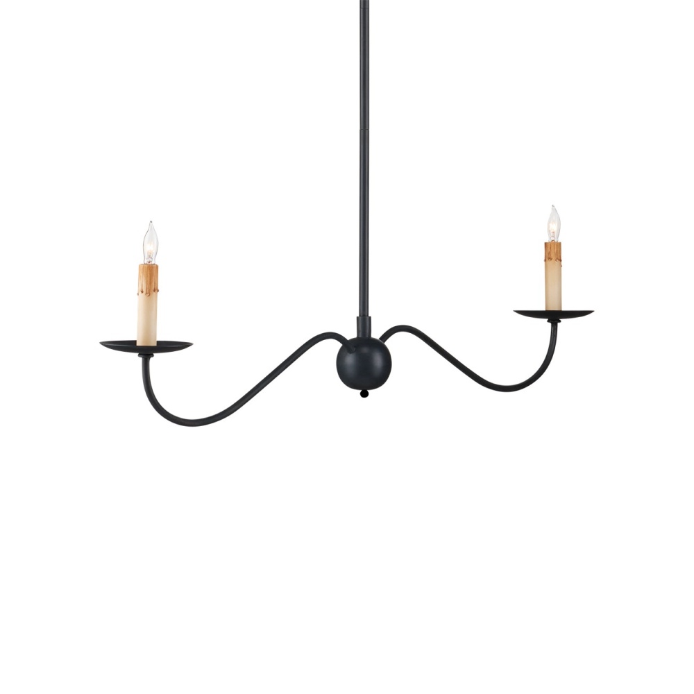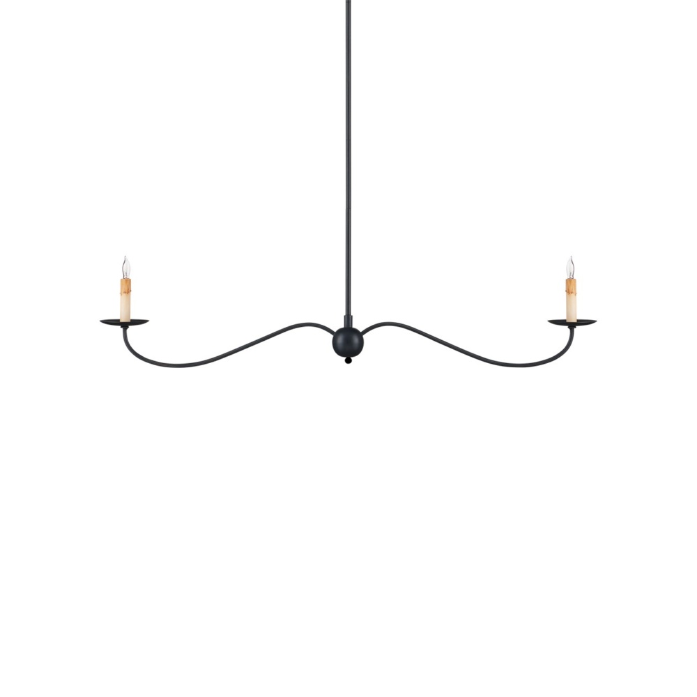 The Saxon Black Linear Chandelier is a graceful fixture that extends its undulant arms in such simplicity, it seems to float. The Zanzibar black finish and its slender lines are nods to a bygone era that make this black chandelier a terrific choice for modern farmhouse interiors, and its shape is perfect for above kitchen islands and bars. The fact that the chandelier is hung from a rod rather than a chain modernizes this design. Adjustable from 17" to 58.5" with use of included chain/rod kit/cable. If your space calls for a longer drop, additional chain/rods/cable is available for purchase.