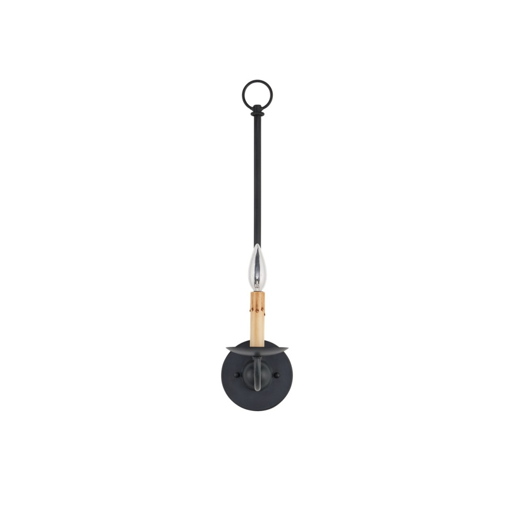 The Saxon Single-Light Black Wall Sconce harkens back to the early days of design in America with its nostalgic references. The Zanzibar black finish, its slender lines, and its candle-sleeve with its faux drips make this black sconce a terrific choice for modern farmhouse interiors, and its shape is perfect for even narrow walls where slenderness is a must.