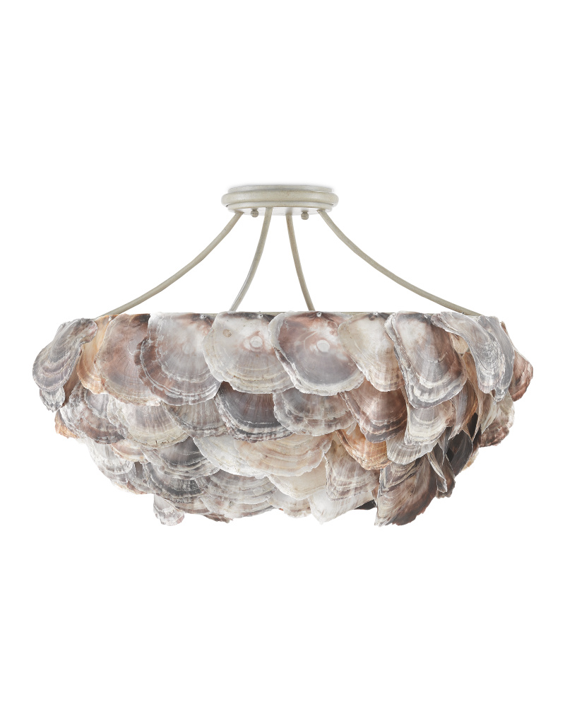With a shade covered in capiz shells, the Seahouse Semi-Flush is a textural wonder. The shells, which are overlapped and applied by hand, take hours to affix to the wrought iron frame in a smoke wood finish. The natural colors in the shade of the shell semi-flush make it perfect for a nautical interior. Adjustable from 22.5" to 90.5" with use of included chain/rod kit/cable. If your space calls for a longer drop, additional chain/rods/cable is available for purchase.