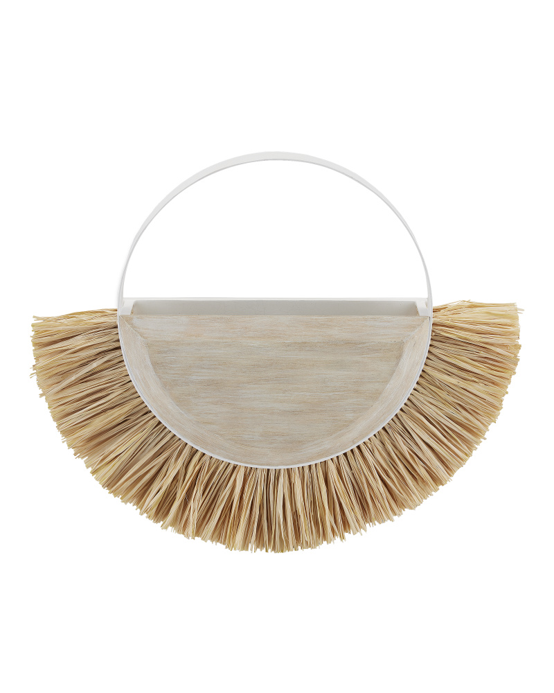 Take a trip to the beach with Jamie Beckwith. Her Seychelles Wall Sconce, which joins her collection of lighting, was inspired by an island-hopping vibe. The circular profile of the white sconce is made of wrought iron in a sugar white finish that is fitted with a wood panel in a sandstone finish. From this extends hand-cut sprays of raffia. The openings into which the natural material is inserted emits a warm glow when light wafts through them. This sconce is flexible, as it can be mounted with the raffia pointing in any direction.