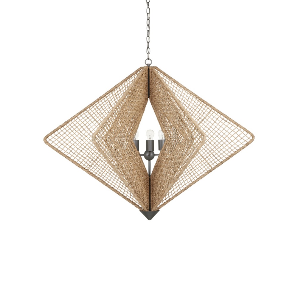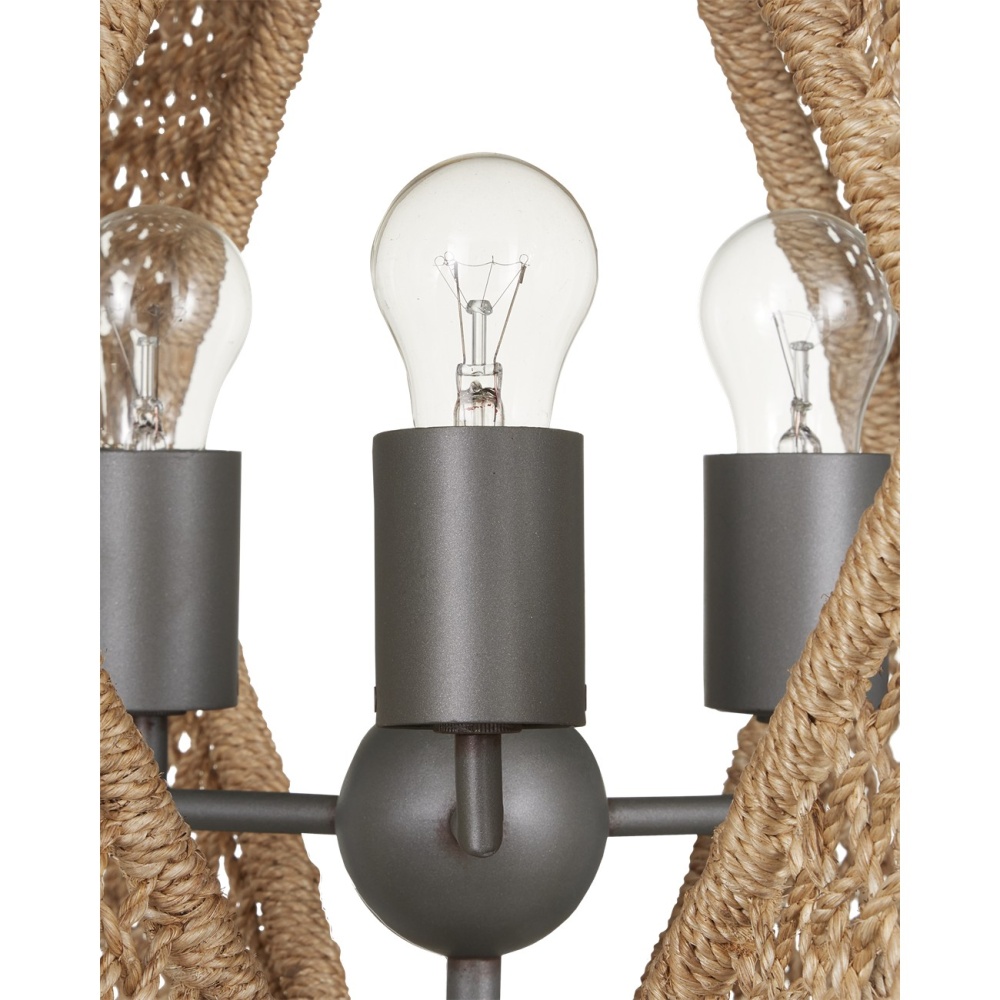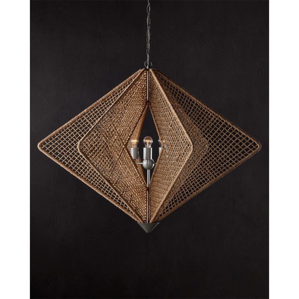 Hiroshi Koshitaka was inspired by biophilic attributes when he designed the Shizen Chandelier: the meaning of the word Shizen in in his native Japanese language is "nature." with this flaring profile, he also continues his exploration of rebirth. The steel frame is wrapped in abaca rope in a uniform pattern that is very hard-won, as the result demands many hours of intensive focus. The metal hardware and cone at the bottom of this generously sized rope chandelier are in a Hiroshi gray finish. Adjustable from 43" to 111" with use of included chain/rod kit/cable. If your space calls for a longer drop, additional chain/rods/cable is available for purchase.