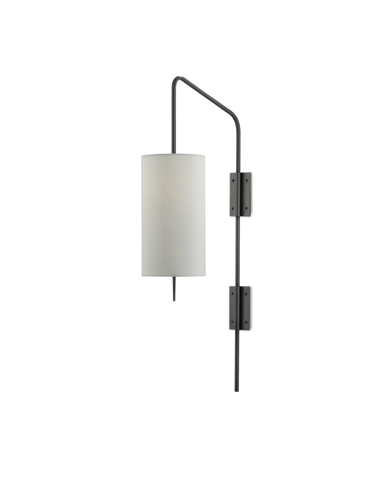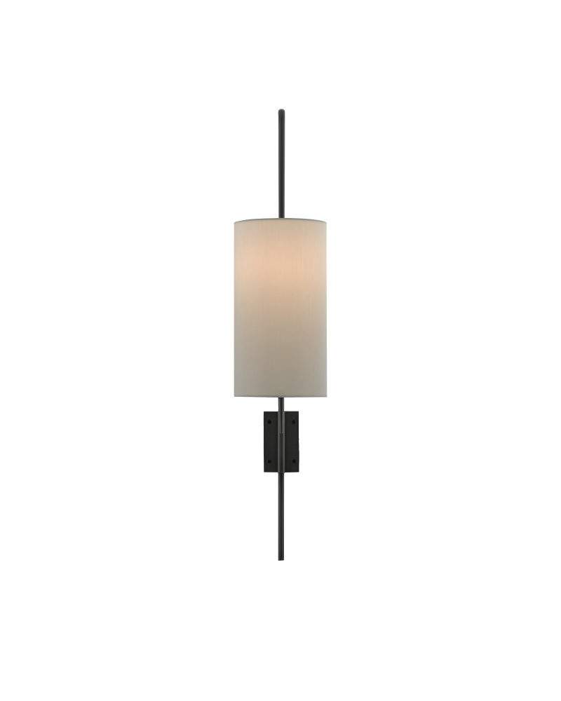 Proving that an industrial chic appearance doesn’t equal dowdy, our Tasmin Wall Sconce has an articulated armature that cuts a striking pose. Made of metal in an oil-rubbed bronze finish, the angle of the arm that holds the bulb, the shape of the finial and the way the off-white shantung shade cleanly joins the two makes this sconce a striking choice for a discerning design devotee.