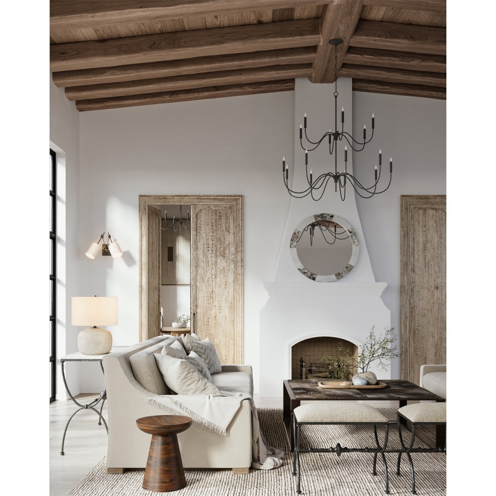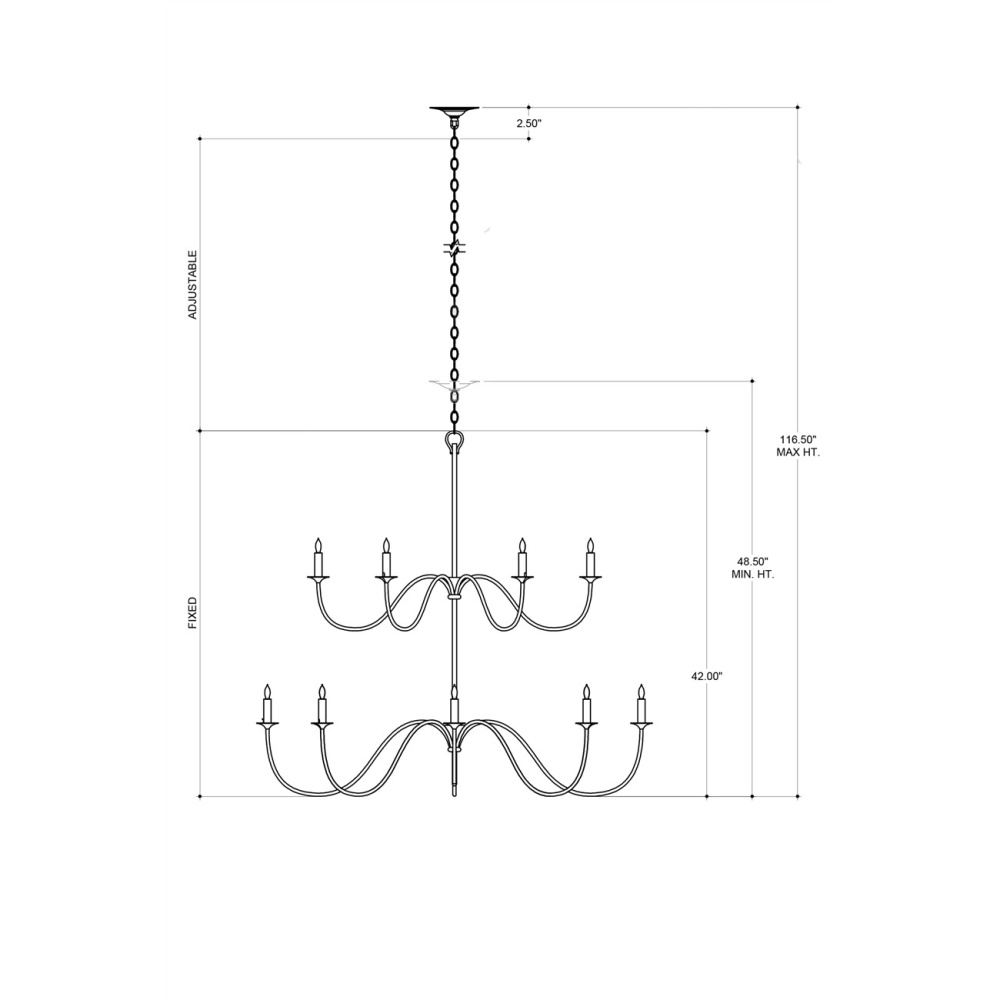 A nod to Early American style, the Tirrell Medium Chandelier has graceful arms that arc upward to hold its candle sleeves with simple dignity. The black chandelier is made of wrought iron in an antique black finish. Adjustable from 48.5" to 116.5" with use of included chain/rod kit/cable. If your space calls for a longer drop, additional chain/rods/cable is available for purchase.