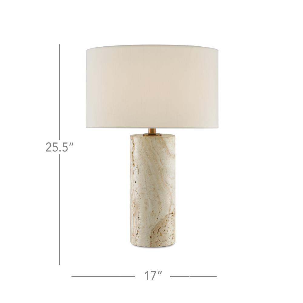 A tall column of swirling marble makes our Vespera Table Lamp a clean-lined luminary with loads of personality. The beige and tan veining will make each of these beige table lamps unique. The metal hardware in an antique brass finish draws out the darker tones in the lamp's body, while the off-white shantung shade echoes the pale tones in the lustrous marble.