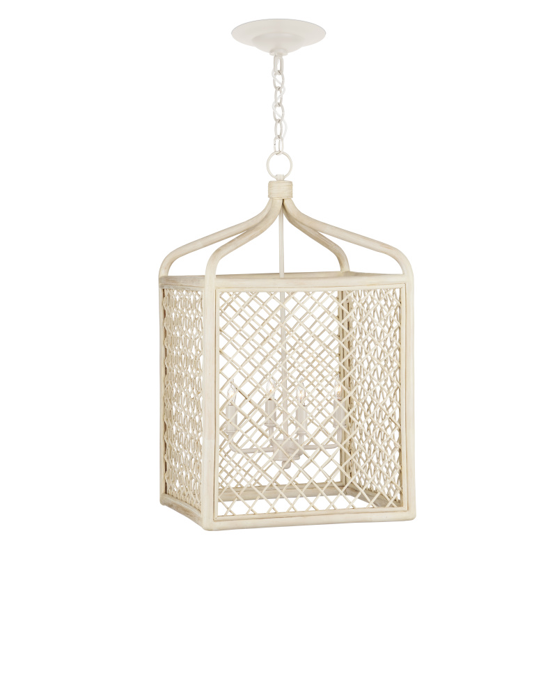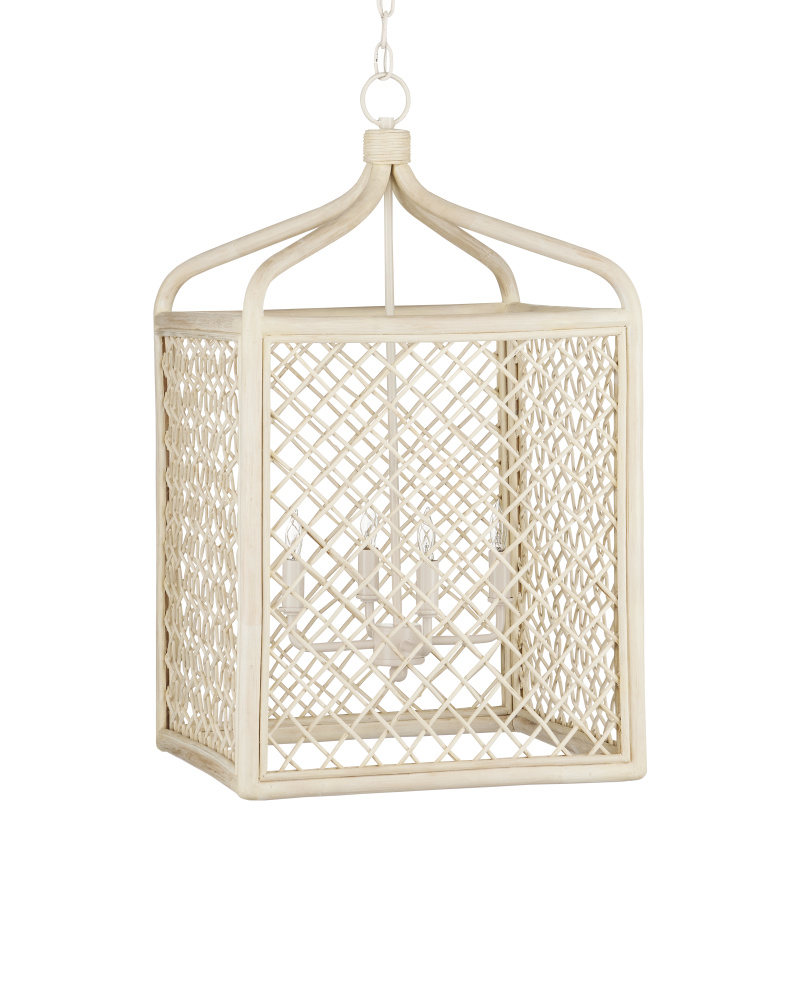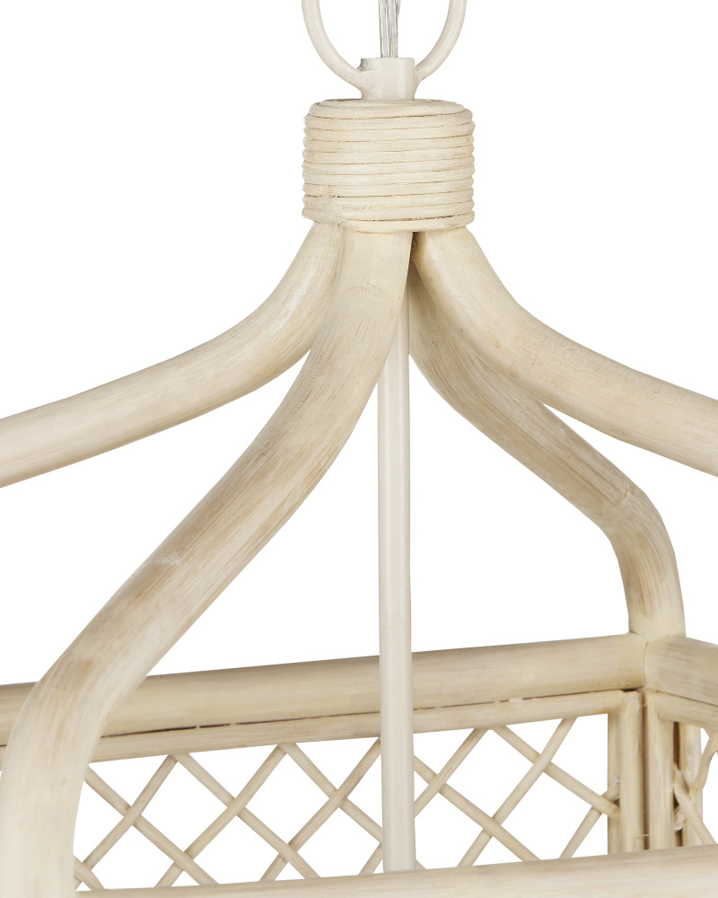 Achieving a traditional lantern shape entirely from wicker is a feat, one that was beautifully realized when artisans wove the Wanstead Lantern from the natural material. Both the thin and thick ribs intermingling to create the wicker lantern have been bleached to lighten the design. The vanilla finish on the hardware enhances the airiness of the lantern's profile. Adjustable from 35" to 102.5" with use of included chain/rod kit/cable. If your space calls for a longer drop, additional chain/rods/cable is available for purchase.