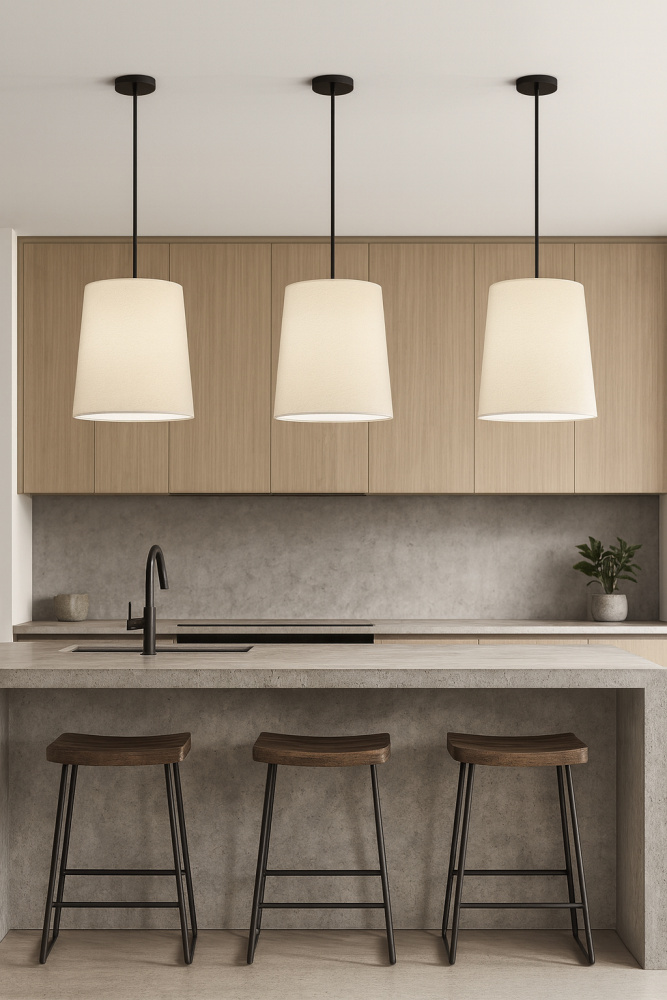 1 Light Incandescent Matte Black Pendant with Boucle Fabric Shade