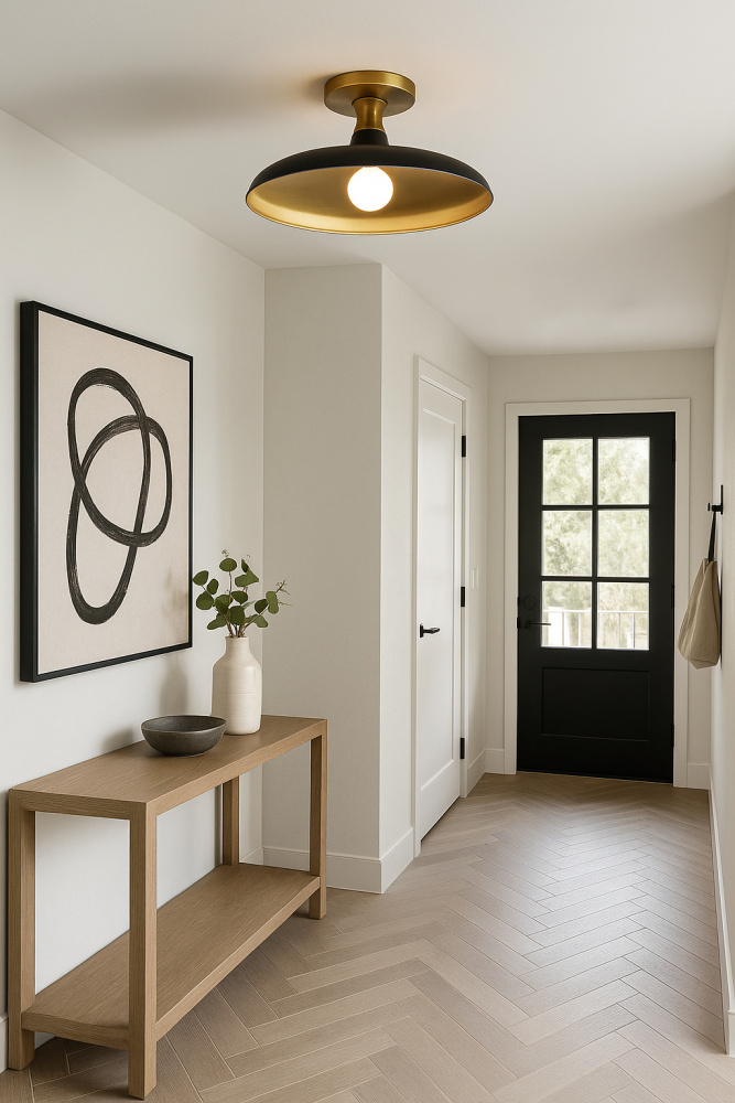 1 Light Semi-Flush Mount, Matte Black and Aged Brass