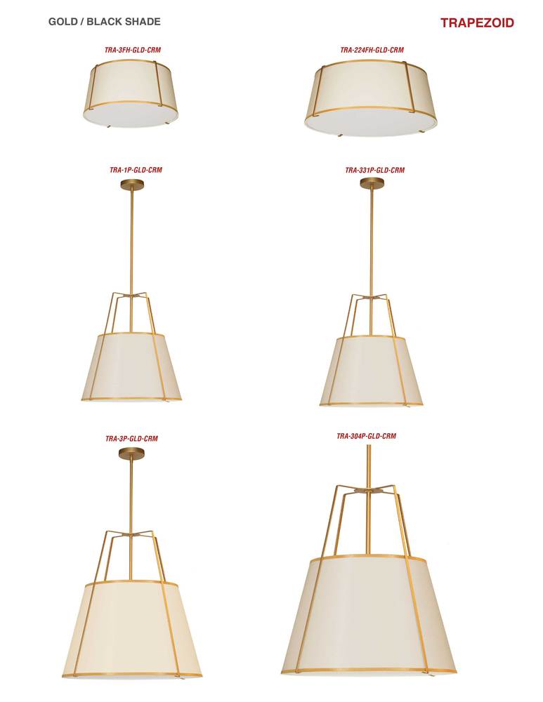 In geometry, the trapezoid is a four-size shape with one set of parallel sides. That shape is repeated throughout the eye-catching scheme of the Trapezoid family of lighting. The trapezoid shape is created by a uniquely crafted metal frame in your choice of finish. A drum-style shade in a variety of shapes determines the overall design. The fabric shade and metal frame come in a range of contrasting and complementary combinations. It's a design with clean outlines for a look that's a contemporary classic, with variations that will add luxury to any room of your home.