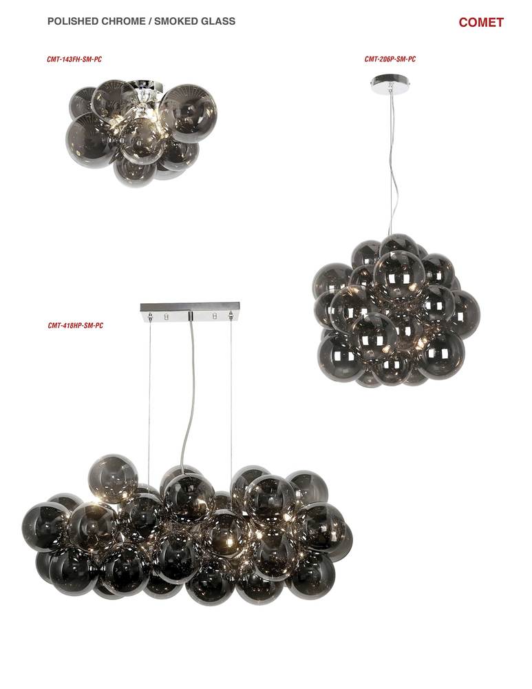 The emphasis is on the appeal of the spherical shape in the Comet family of lighting. Available in varied configurations and sizes, Colby lighting shows off your opulent sense of contemporary style. The primary feature of each Colby light is created with glass globes that reflect and amplify the lights set within a metal frame. Clear or smoked glass, and a choice of contrasting metal finishes, complete the striking design. It's a sure way to create textural appeal and add curves to any area of the home from hallways to main rooms like the dining room or kitchen.