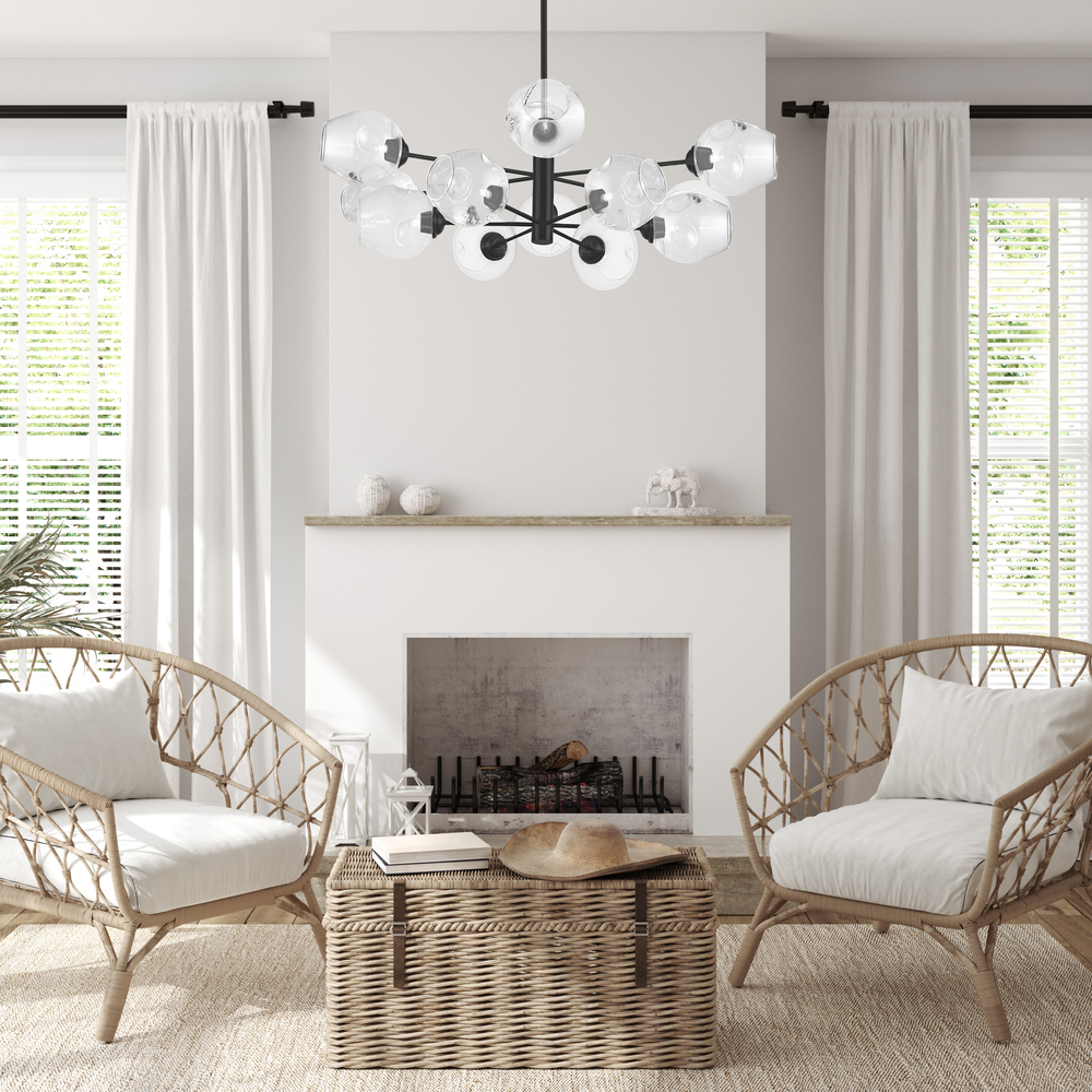 The eye-catching contrast of glass globes and sleek straight lines form the basis of the ABII family of lighting fixtures. It's a versatile and adaptable design with options ranging from a single sconce to a large pendant light in a look that can work with virtually any room or design scheme. The metal base and arms create a pattern to showcase the reflective effects of the glass globes. Colorway options include complementary finishes from warm to stylishly dramatic. Halogen lights add a warm glow. From ultra-modern minimalism to mid-century and even more traditional décors, the ABII family of lighting’s transitional design is both luxurious and timeless in its appeal.