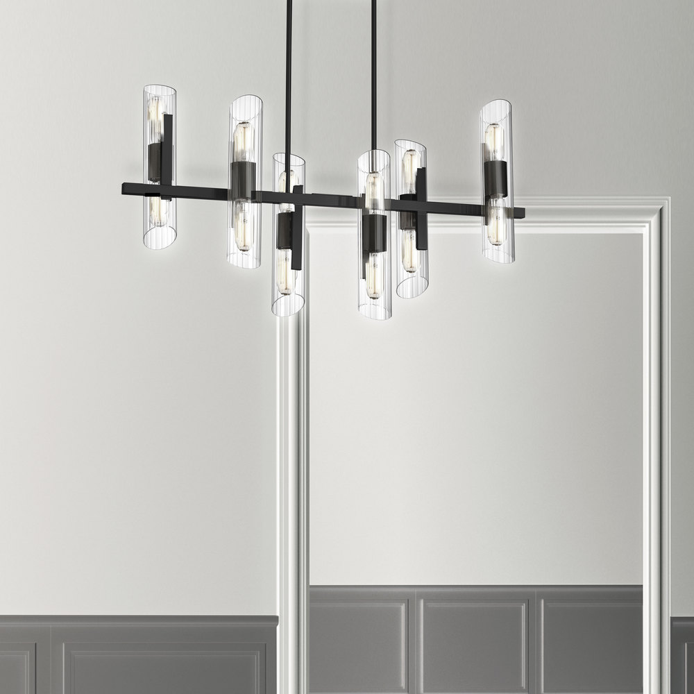 Light that's housed in elegant fluted glass forms the basis of the design for the Samantha family of lighting fixtures. It's an opulent look that will enhance transitional décor schemes, with touches of mid-century as well as contemporary styles. The metal frame contrasts with clear fluted glass in each available configuration, from the vertical vanity lights to horizontal pendant lighting. The details create a noticeable statement of your sophisticated tastes. With its varied configurations, Samantha lighting is suitable for both smaller and larger spaces, including vanity options as well as pendants for dining and living rooms.