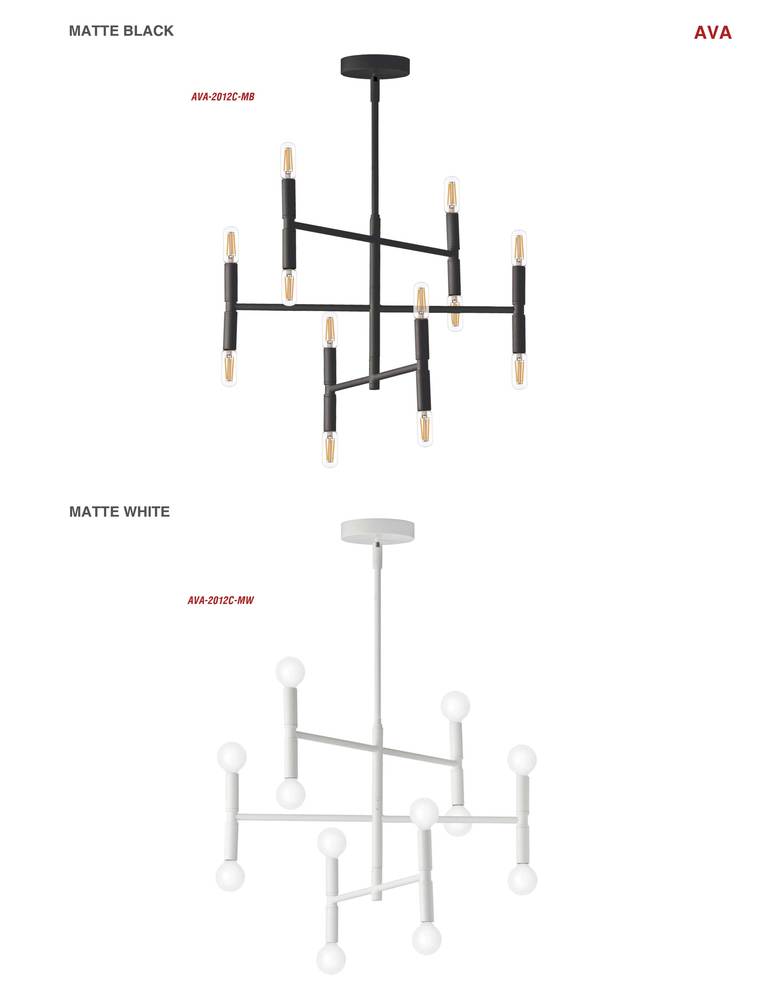 Ava chandelier lights pop out of a contemporary design scheme with an artistic appeal. They can become the focal point of any room, from the living or dining room to a master bedroom. The unique beauty of this family of lighting is based on an asymmetrical linear pattern created by a metal base and arms in your choice of elegant finish. Smaller round lights at both ends of each arm complete a refined and sophisticated look. Ava lighting is an easy way to enliven any simple room design, and add both textural and linear appeal.
