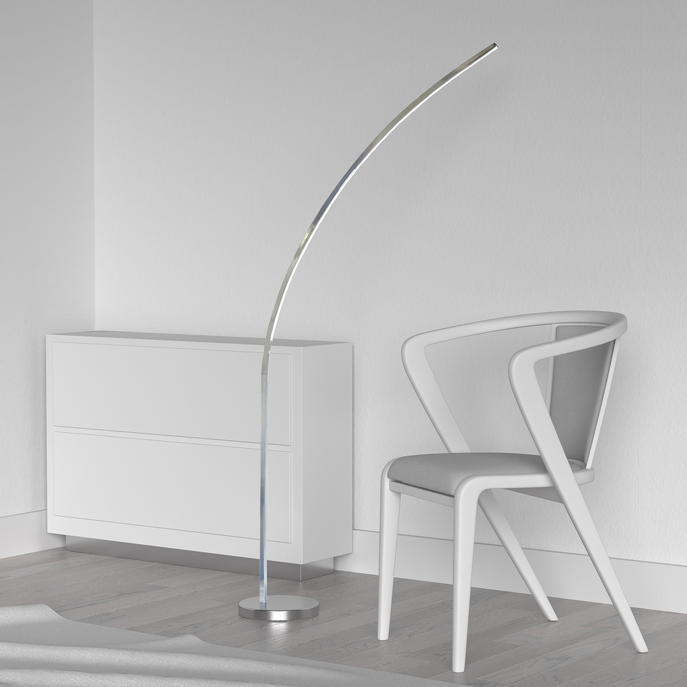 Clean lines and appealing curves draw attention to the Gentle Bend family of lighting. The design features an integrated LED light. LED fixtures produce light at up to 90 percent better efficiency than incandescent lighting. The rod extends upwards from a metal base, incorporating a slight bend that begins halfway up the construction. The LED light, set inside the curve, can be placed to provide welcome illumination over a specific area. Form and function blend together in a seamless design for your modern living room, bedroom or office space.