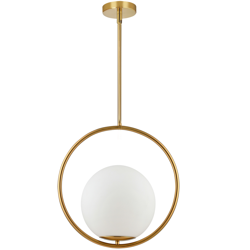 A circle within a circle – it's a pleasing concept that makes up the heart of the Adrienna family of lighting. The contrast of a defined open circle frame and glowing globe light adds a multi-dimensional effect. A metal frame in choice of finishes curves around in a perfect circle or oval, available in both pendant drop and table configurations. White glass globes house the light for a look that is reminiscent of pop art. Modern Adrienna lighting will add a stylish focal point to kitchens, dining rooms, hallways and any accent table where you want to draw the eye.