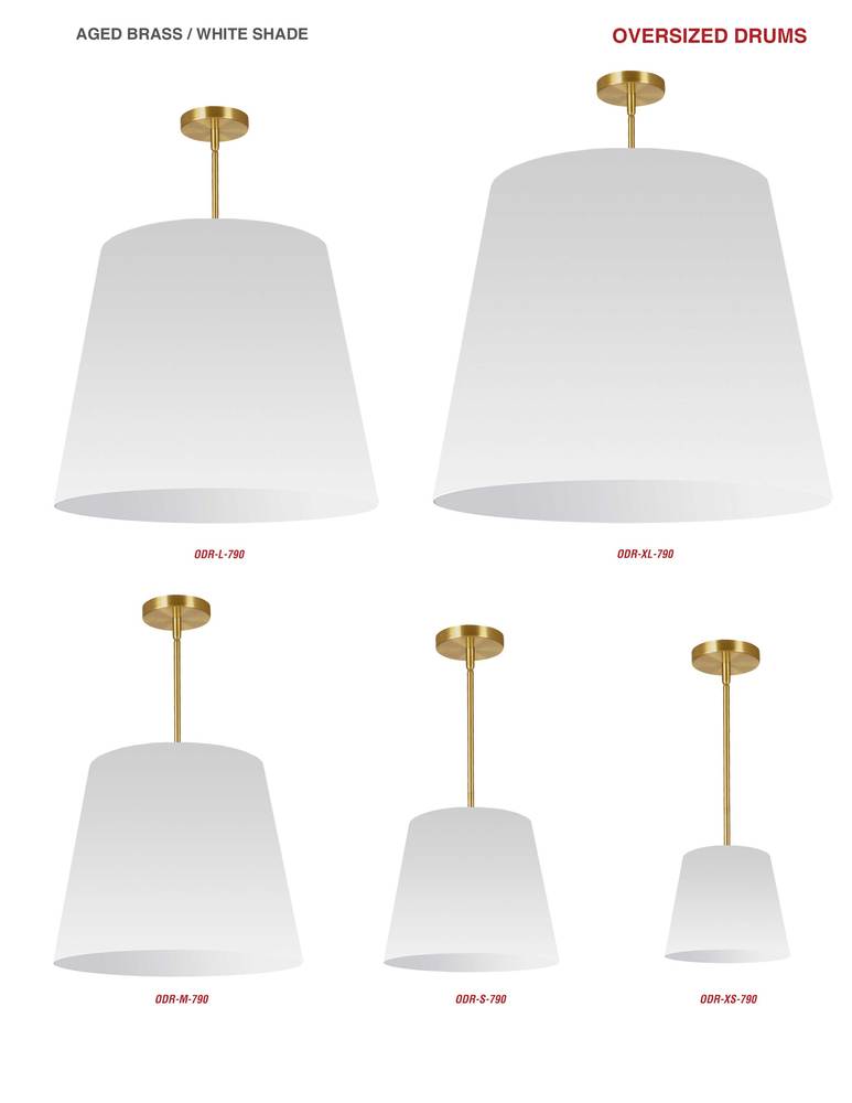 Oversized Drum lighting offers a look that can't be ignored, but is simple enough to blend in with strong modern and contemporary décor schemes. Clean lines and an elegant shape give it a luxurious appeal. A simple metal drop and/or frame is dominated by a large fabric drum shade. Options include both monochromatic designs, and contrasting inner/outer shades for a more dramatic effect. With so many options and configurations from floor to pendant lighting, Oversized Drum lighting is the ideal way to unify the look of a modern home.