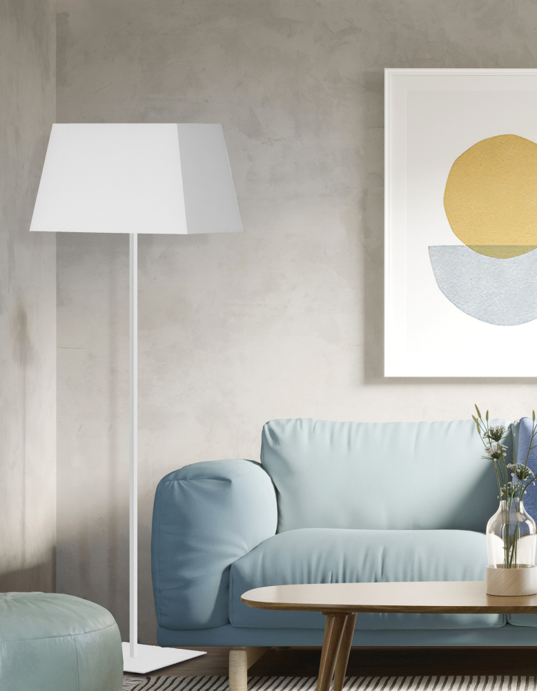 1LT Sq Base Floor Lamp, MW w/ WH Shade