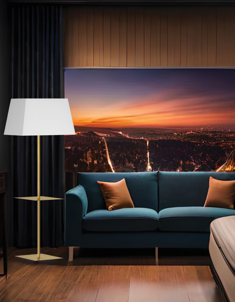 1LT Sq Base Floor w/ Shelf, MB w/ WH Shade