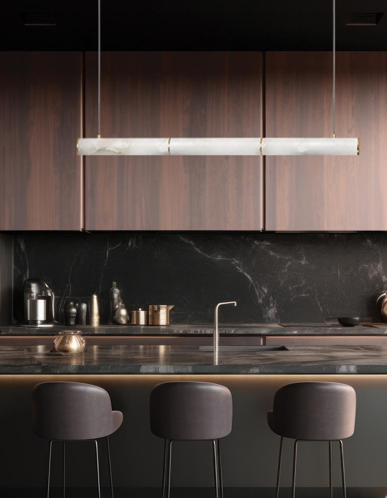 30W Horiz Pendant, AGB w/ faux Alabaster