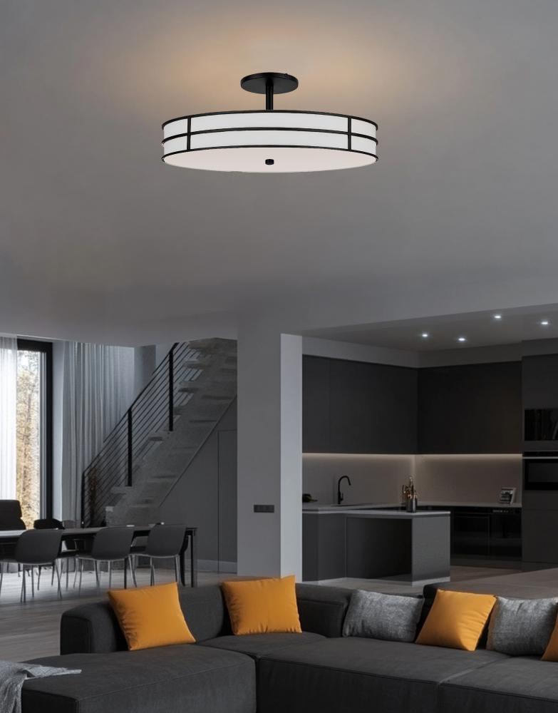 3LT Semi-Flush, MB w/ WH Fabric Shade