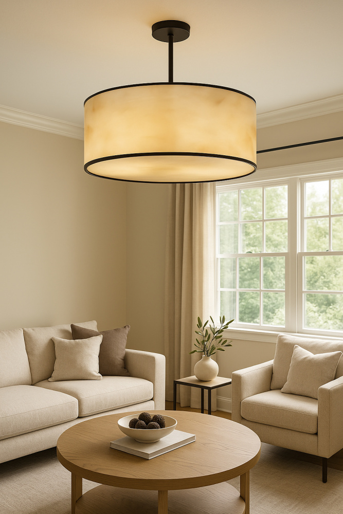 34W Pendant, Matte Black w/ Marble Alabaster Shade