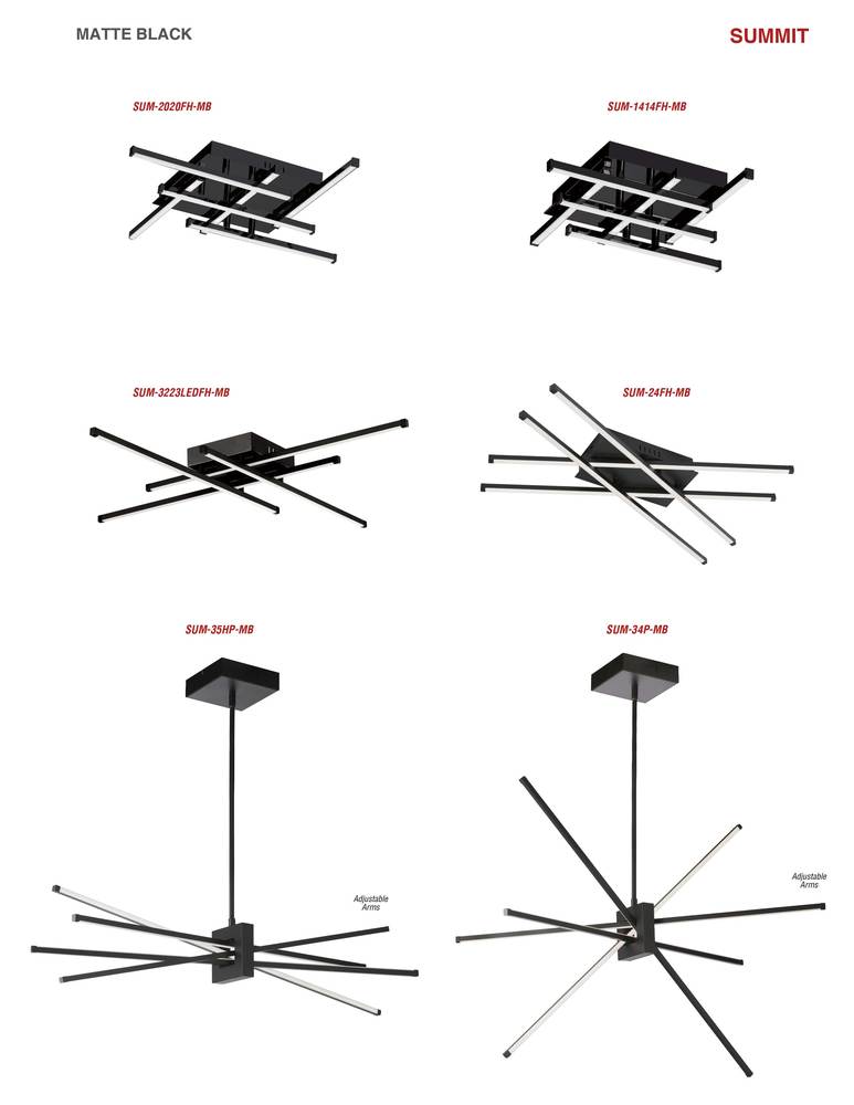 Show off your funky sense of style with an upscale touch by adding the Summit family of lighting to your home. The look is spacious and airy, in a linear design that is sure to garner attention. A metal frame and spoked arms come in your choice of complementary or contrasting finishes, and either pendant or flush mounted constructions for a versatile look that blends with any modern or contemporary décor scheme. Suitable for living or dining rooms or artistic kitchen, the Summit family of lighting draws the eye, but won't overwhelm your other furnishings.