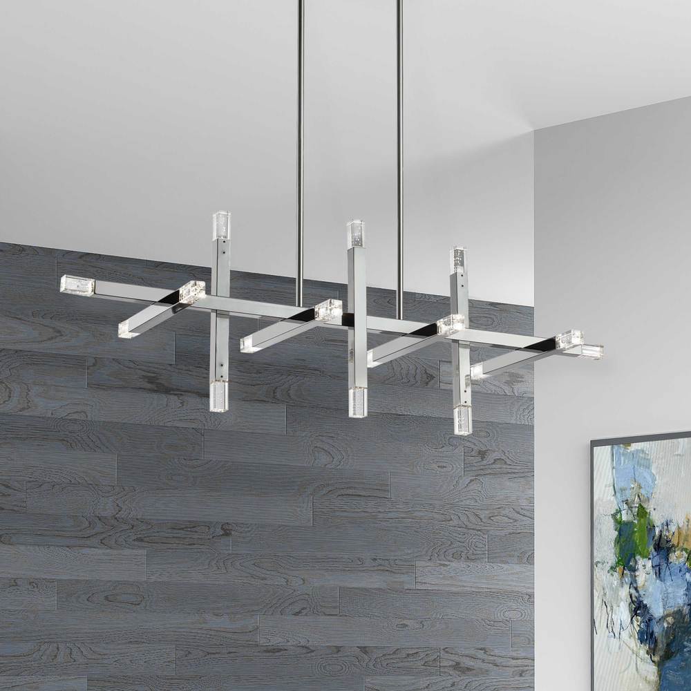 Intersecting lines and bold contrasts create the chic appeal of the Francesca family of lighting. With a nod to contemporary visual arts, the design comes in various configurations for chandeliers or wall lighting. The clever design is crafted with a metal base in a choice of finishes, based on the simple element of crossed bars. At the end of each bar, an LED with frosted acrylic diffusers create warm ambient light in all directions. Striking Francesca lighting is available in configurations to suit any area of your home from a hallway to the living and dining rooms.