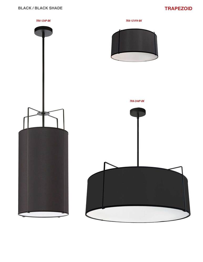 In geometry, the trapezoid is a four-size shape with one set of parallel sides. That shape is repeated throughout the eye-catching scheme of the Trapezoid family of lighting. The trapezoid shape is created by a uniquely crafted metal frame in your choice of finish. A drum-style shade in a variety of shapes determines the overall design. The fabric shade and metal frame come in a range of contrasting and complementary combinations. It's a design with clean outlines for a look that's a contemporary classic, with variations that will add luxury to any room of your home.