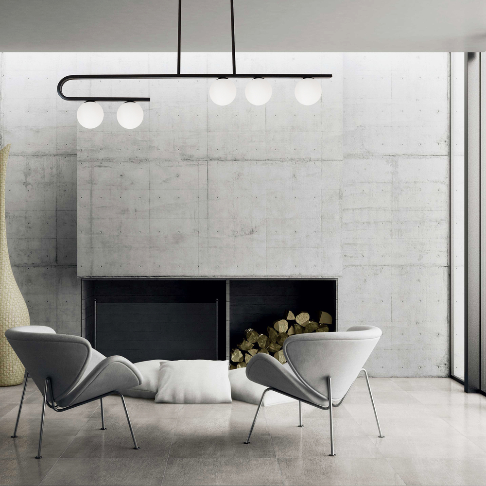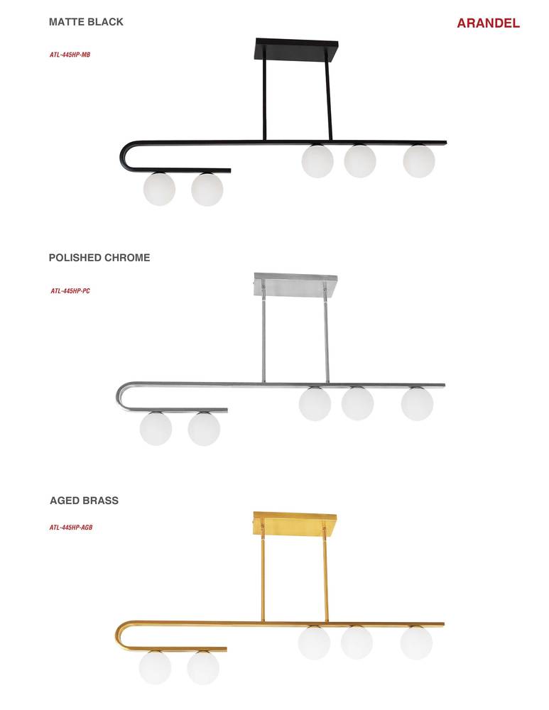 The Atlas family of lighting will draw the eye no matter how stylish the rest of the room’s décor. Its asymmetrical design incorporates linear and geometric elements for a look that's both fun and ultra-chic. The metal body in a choice of stylish finishes contrasts with white globe lights. The effect is warm, and absolutely captivating. Atlas’ curved lines will soften the sleek edges of an ultra-modern kitchen. It's the perfect way to spice up kitchen décor with a touch of mid-century design, or provide overhead lighting for a home office, or living room.