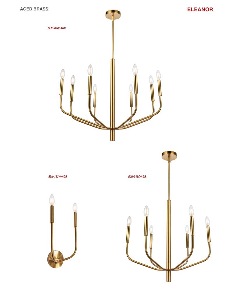 Using a simple idea based on traditional chandelier designs, the Eleanor family of lighting exudes luxury and refined style. It's available in configurations to suit larger or smaller spaces. The metal frame in a choice of finish features a strong vertical drop, with arms that curve gracefully upwards in one or two tiers. An optional fabric shade encompasses the silhouette while diffusing the light to a softer glow. Elegant and striking in its effect, Eleanor lighting will enhance the main rooms of your home, including living and dining rooms, or a main foyer area.