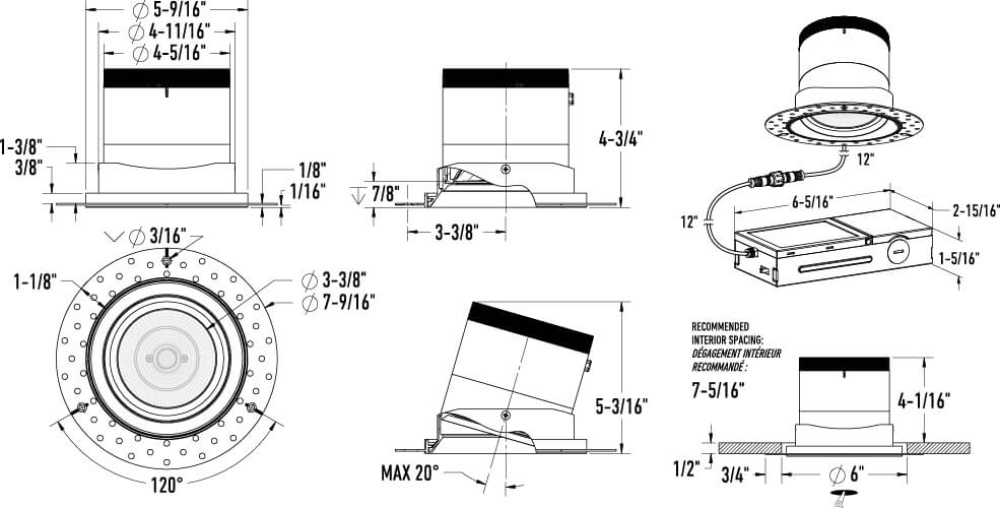 6in Modular Downlight, , 20 degree Beam Angle, Gimbal Reflector, Alzak, Black Trim