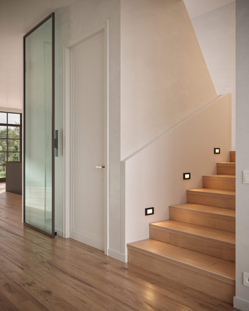 This flat panel step light, designed for both indoor and outdoor use, combines modern elegance with robust functionality, casting a subtle and inviting glow to enhance safety and aesthetics in any space.