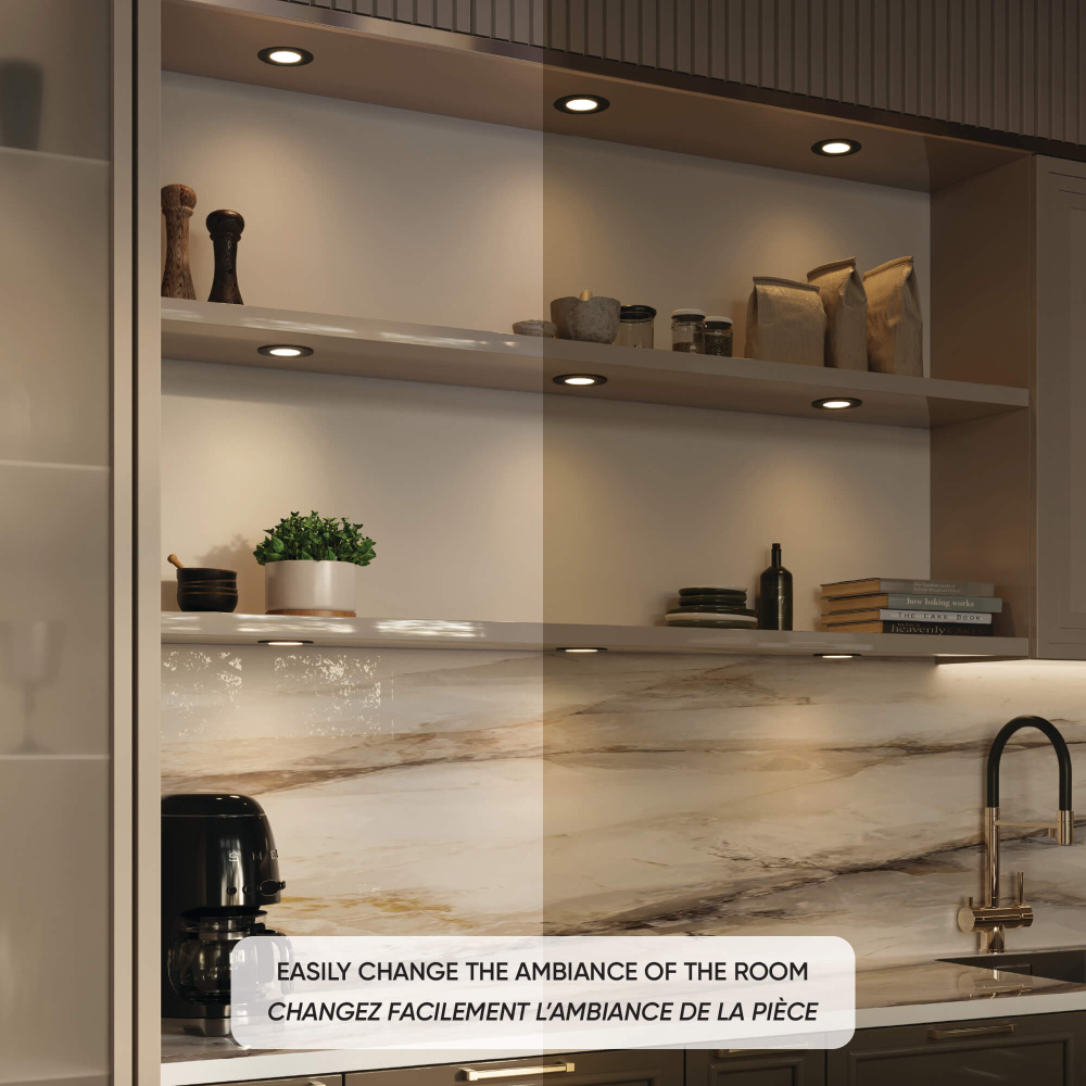 The Push-Puck, a versatile 24V LED puck, features Touch Tune technology, push-to-change CCT for effortless color temperature adjustment, and delivers precise, high-quality illumination for recessed or surface-mounted applications.
