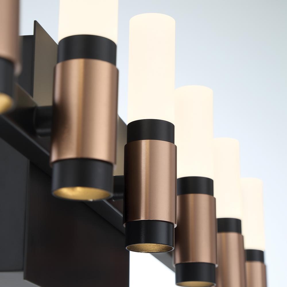 A soft industrial design features LED lights that are nestled within candleholders accented with contrasting toned collars. The combinations of black and nickel and black and gold have inspired a new wave of trends that blend vintage ideology with modern styles.