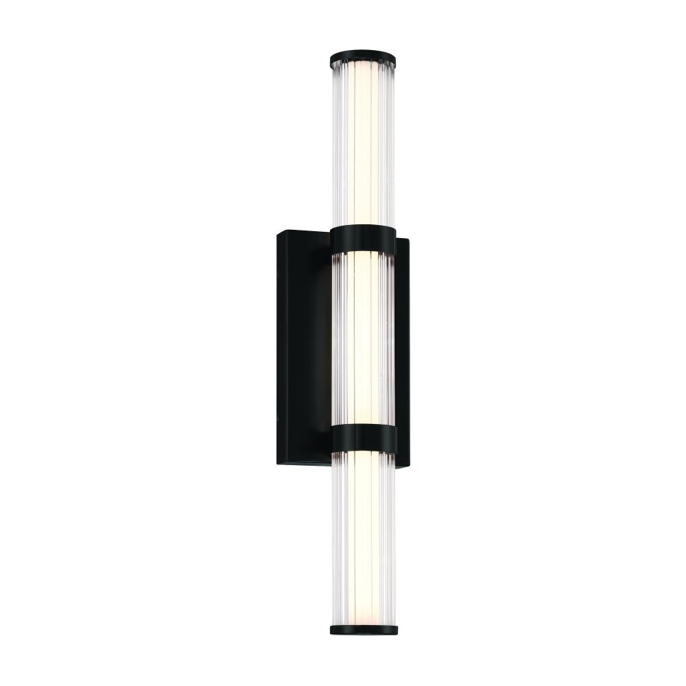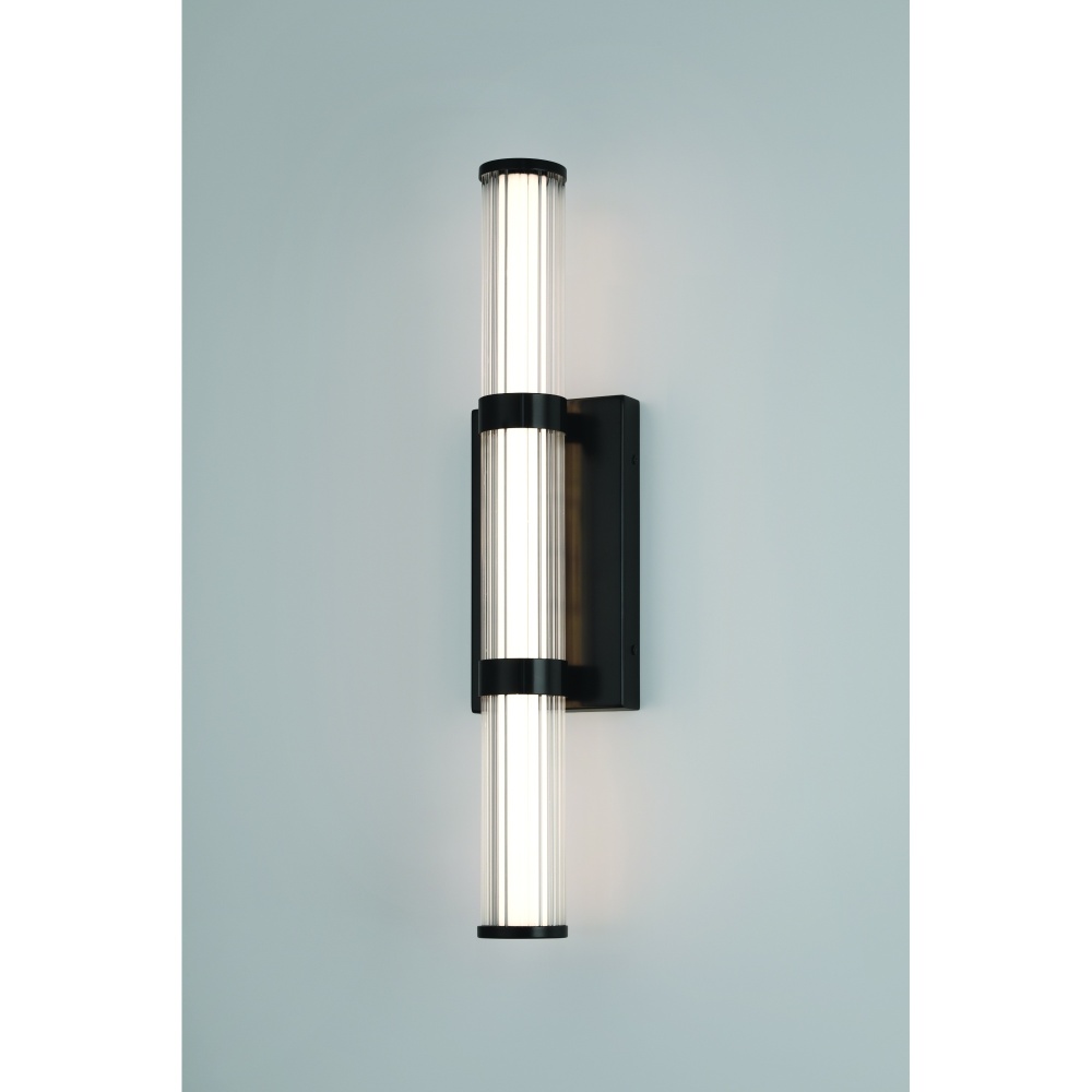 To soften the sliver of linear light, ribbed glass has been sleeved around the white beam, thereby delivering a welcoming flank to doorways and entries. The simple clarity of design will add striking panache to townhomes, buildings and residences.