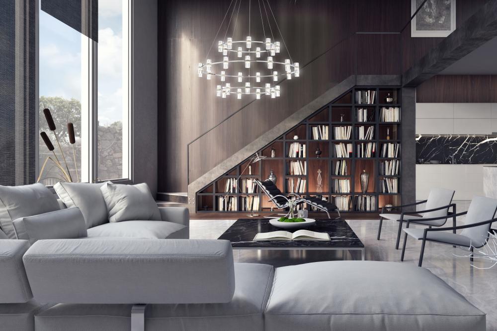 Cylindrically shaped metal with clear and frosted acrylic accents arranged on a chrome frame