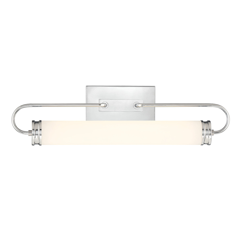 Soft-diffused lighting is presented via a frosted white roll of glass finished with a stepped cap on each end and suspended between embracing racetrack arms. The comfortable illumination whether installed horizontally or vertically will compliment lifestyle settings from contemporary to traditional.