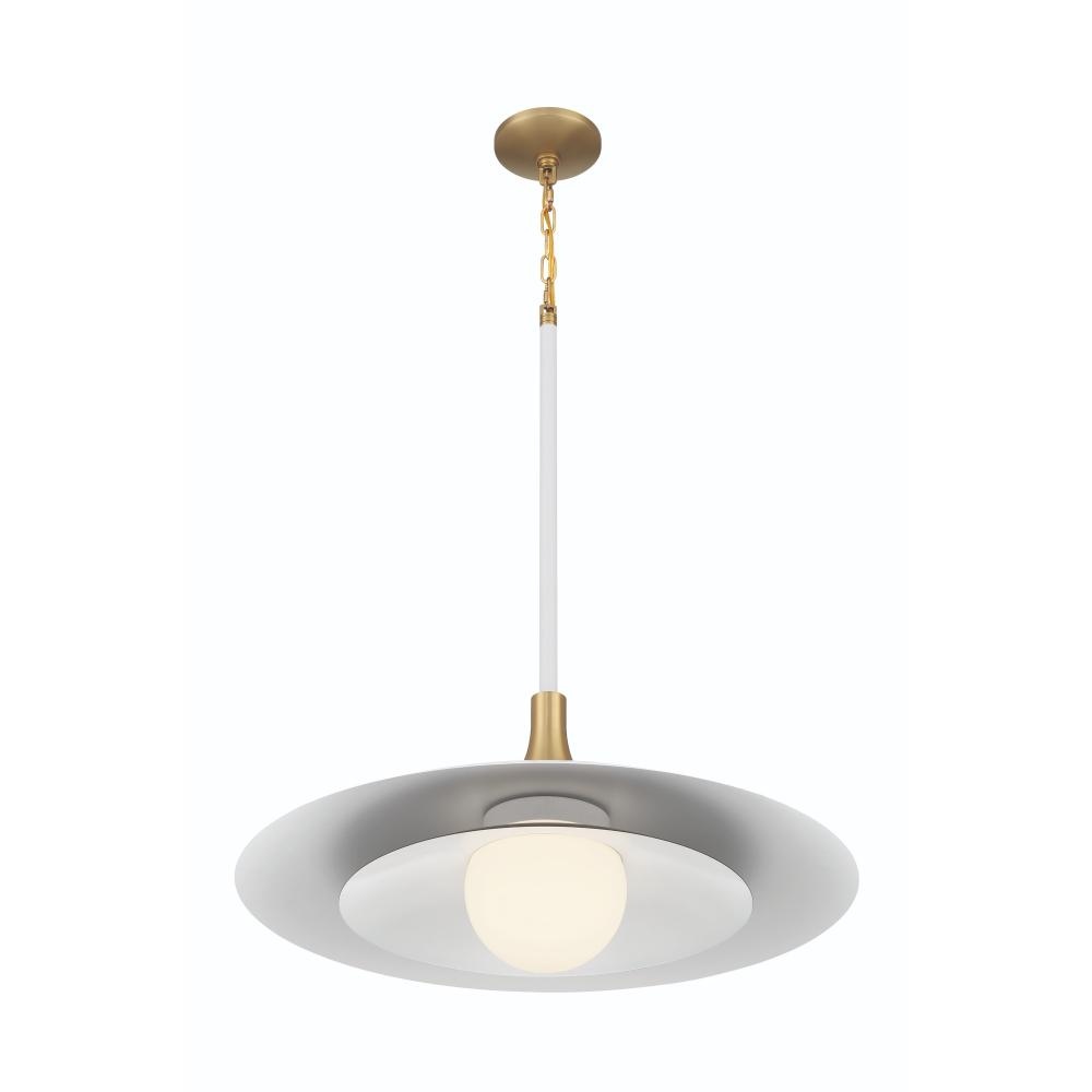 Stacks of multiple metal discs are a halmark of classic deco and modern pendant design. Blending these shapes with trending finishes and illuminating white opal glass with led, makes the welsh collection an artistic focal point to any decor setting.