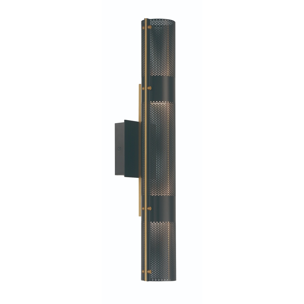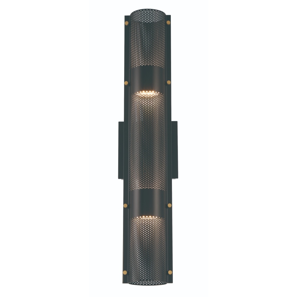 Blending into the night, westcliffe disappears into an exterior surface, then casts light up, down and outward in soft ambiance . When viewed in the daylight, perforated surfaces and brass accents are exacting definers of industrial sophistication.