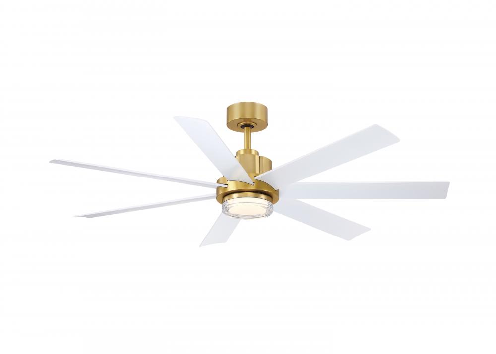 FINISH: Brushed Satin Brass ceiling fan from the Pendry 56 Collection features 7 Matte White blades