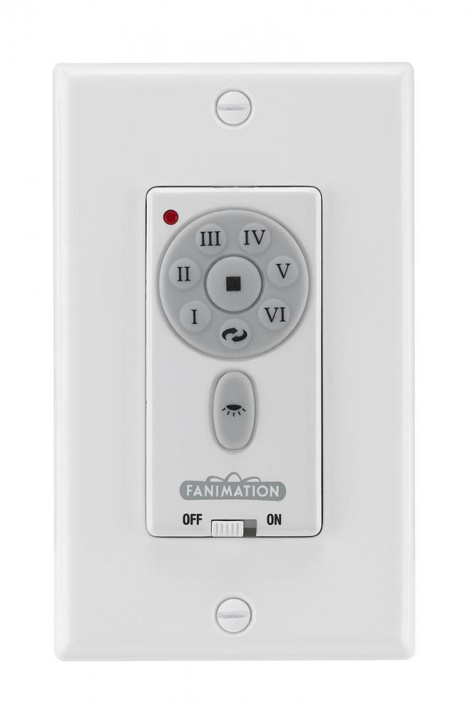 This wall-mounted control will allow you to control your DC motor ceiling fan, light, and reverse functionality. Uses infinite light levels and 6 speeds, making this a versatile control option for your ceiling fan.