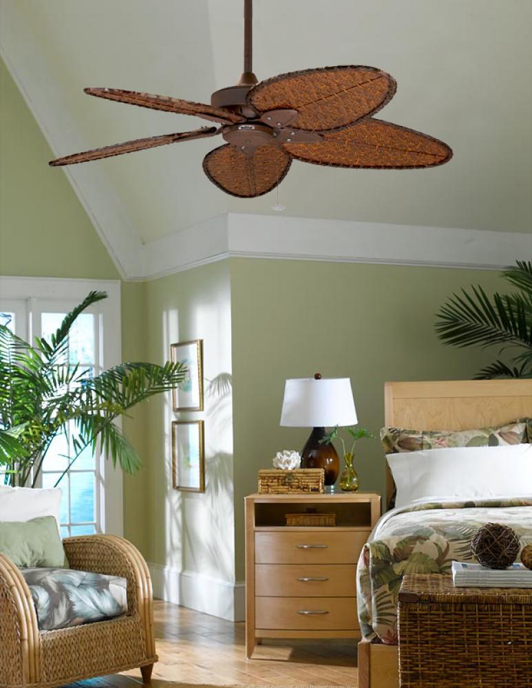 FINISH: Rust ceiling fan from the Windpointe Collection features 5 Woven Antique Bamboo blades