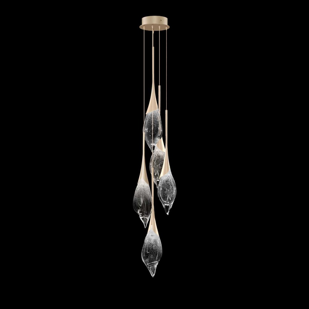 Mayu celebrates the art of glassblowing through delicate, hand-pulled forms shaped by master artisans. Each pendant glows with gentle radiance, transforming space like twilight-revealing the quiet poetry of shadow, light, and artistry within the glass itself.