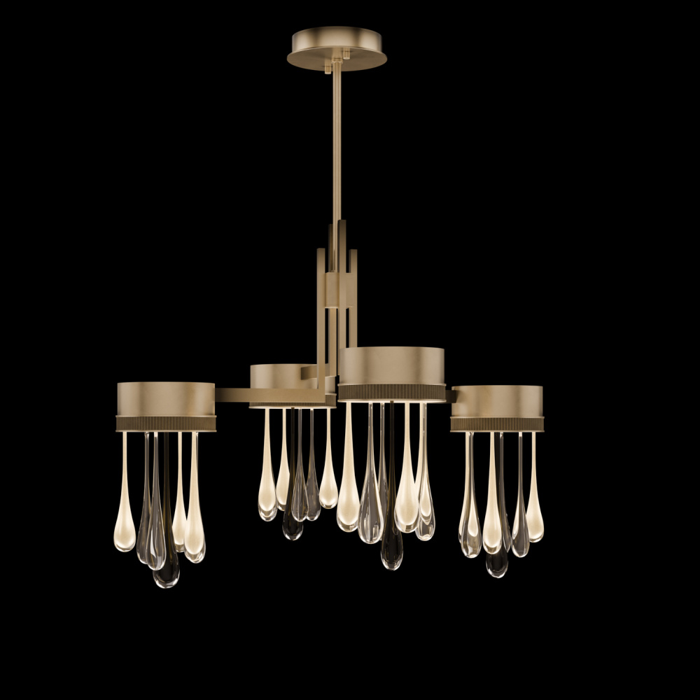 This LED pendant captures the beauty of motion suspended in time-artisan-blown glass “rain” drops infused with swirling mist and illuminated from within. Offered in Silver, Gold, or Copper drops, each paired with clear and black droplets and complemented by a hand-applied ombré finish that enhances its luminous depth.