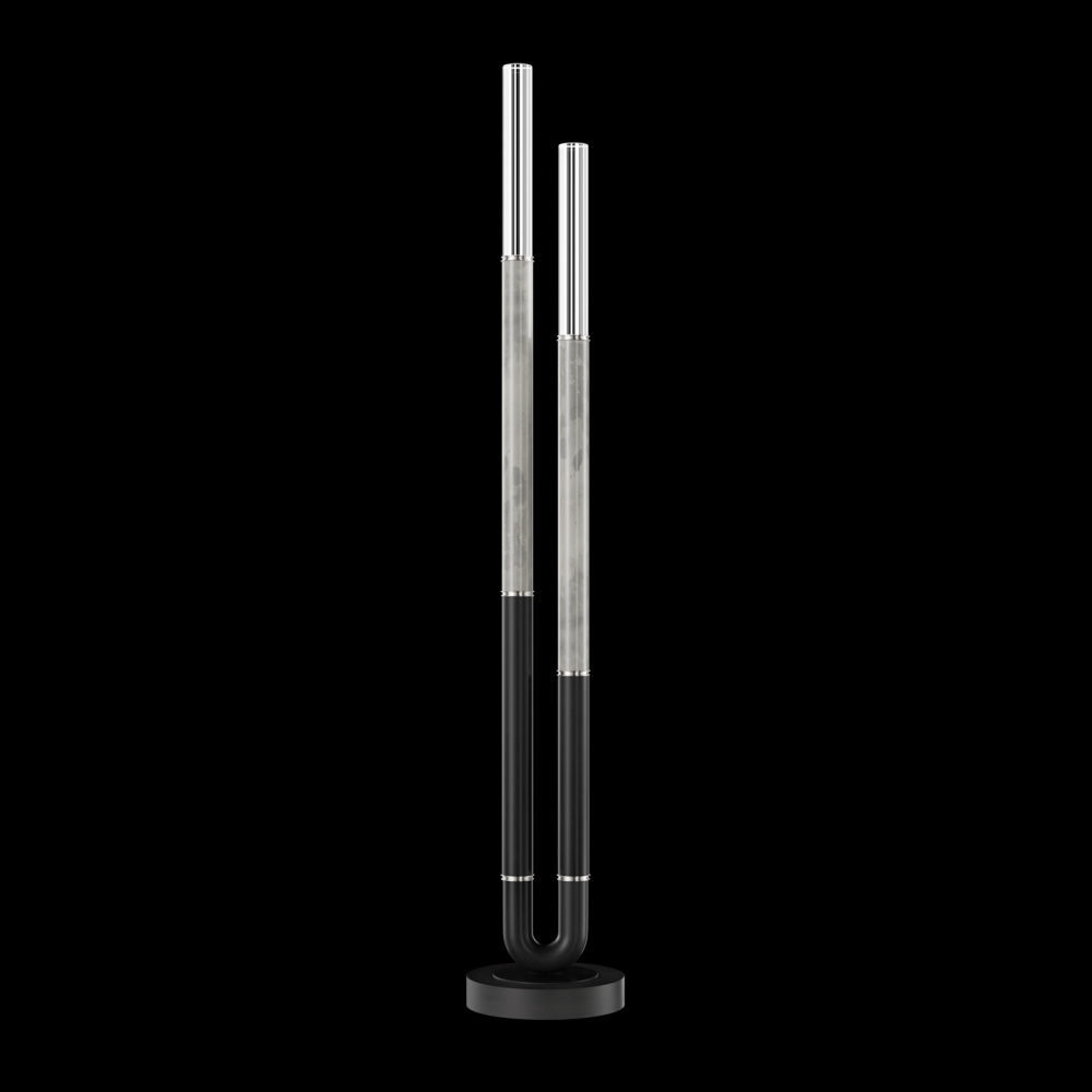 Floor lamp featuring soft curves and the inclusion of metals carefully handcrafted to transition from parchment to magnificent glass, culminating in a stunning beam of light. Available in a wide range of exquisite finishes, including our five standard finishes and our newest Soft Ombre Bronze & Soft Ombre Silver, with choice of parchment colors. Also available with no parchment.