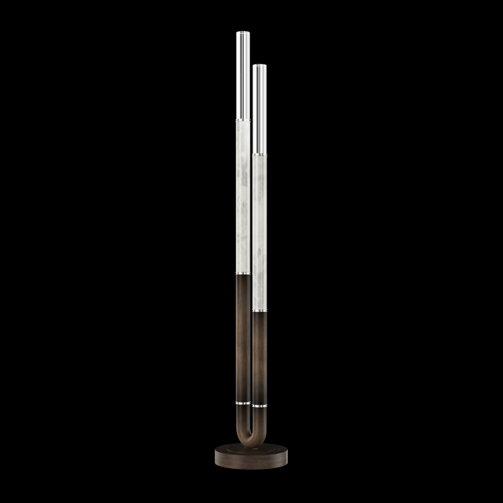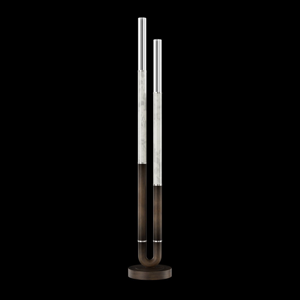Floor lamp featuring soft curves and the inclusion of metals carefully handcrafted to transition from parchment to magnificent glass, culminating in a stunning beam of light. Available in a wide range of exquisite finishes, including our five standard finishes and our newest Soft Ombre Bronze & Soft Ombre Silver, with choice of parchment colors. Also available with no parchment.