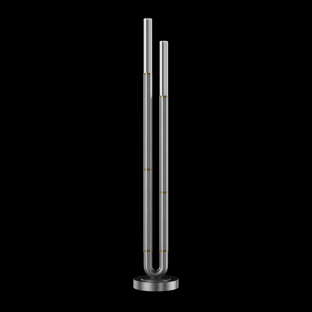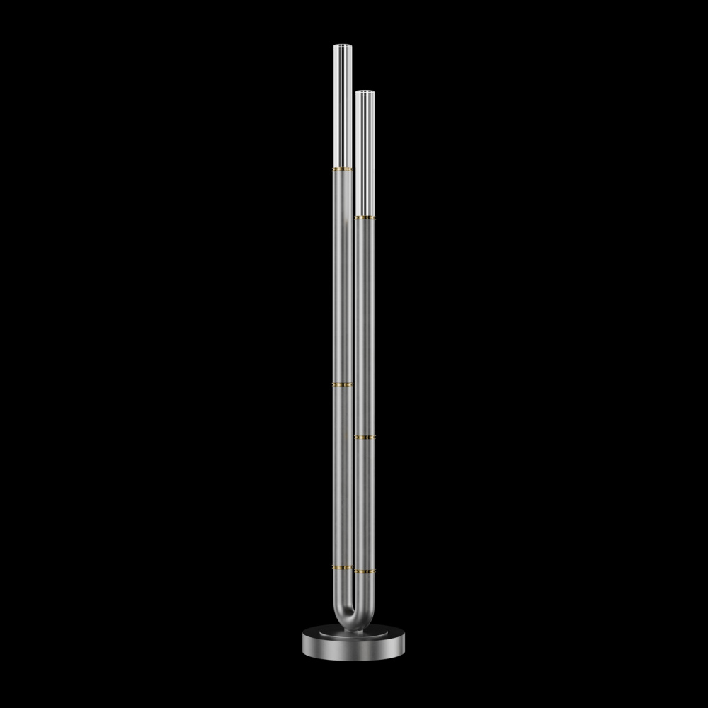 Floor lamp featuring soft curves and the inclusion of metals carefully handcrafted to transition from parchment to magnificent glass, culminating in a stunning beam of light. Available in a wide range of exquisite finishes, including our five standard finishes and our newest Soft Ombre Bronze & Soft Ombre Silver, with choice of parchment colors. Also available with no parchment.