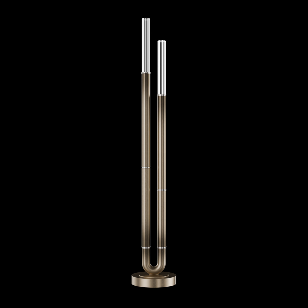 Floor lamp featuring soft curves and the inclusion of metals carefully handcrafted to transition from parchment to magnificent glass, culminating in a stunning beam of light. Available in a wide range of exquisite finishes, including our five standard finishes and our newest Soft Ombre Bronze & Soft Ombre Silver, with choice of parchment colors. Also available with no parchment.