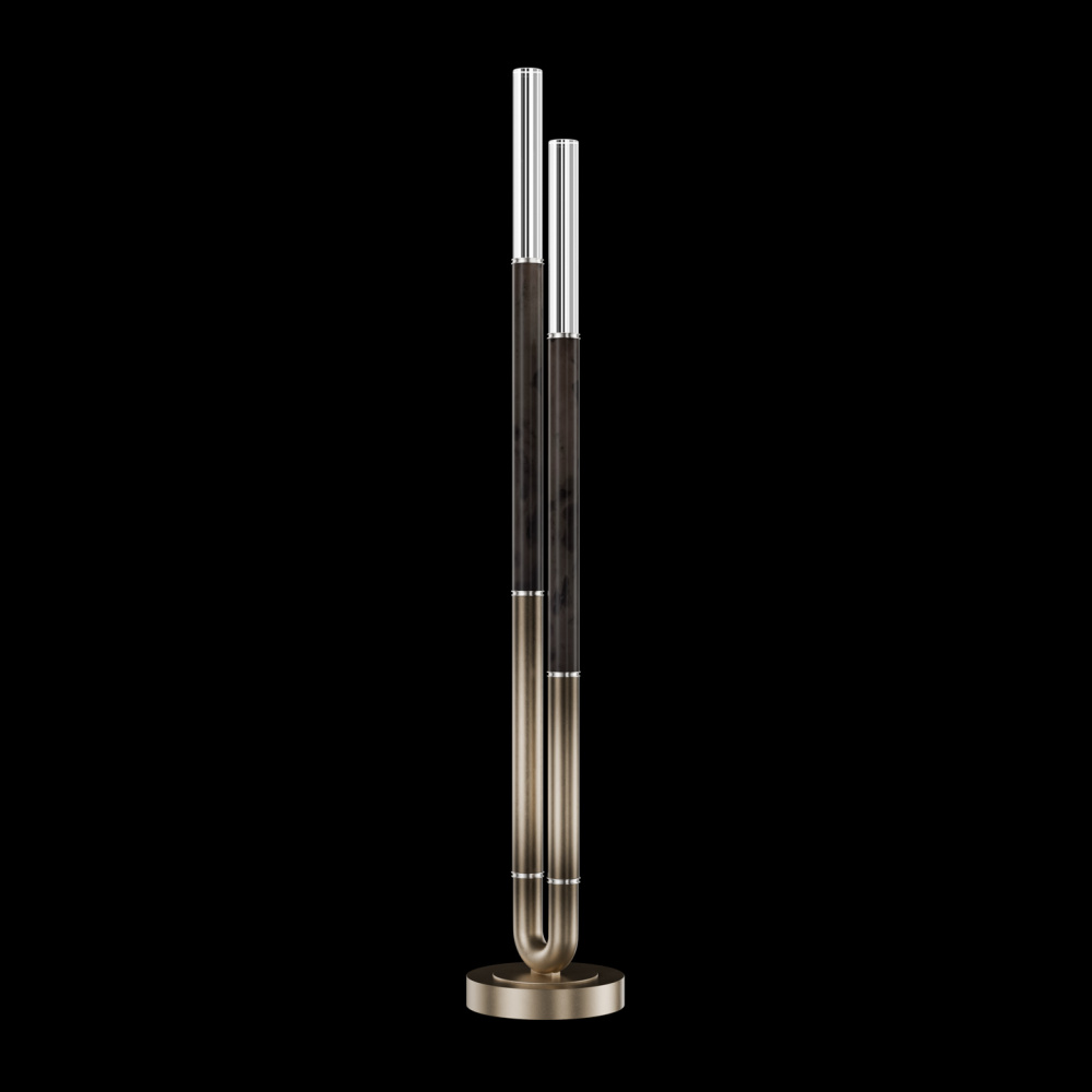 Floor lamp featuring soft curves and the inclusion of metals carefully handcrafted to transition from parchment to magnificent glass, culminating in a stunning beam of light. Available in a wide range of exquisite finishes, including our five standard finishes and our newest Soft Ombre Bronze & Soft Ombre Silver, with choice of parchment colors. Also available with no parchment.